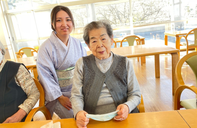 昨日は久しぶりに香川県でも雪が積もり、とても寒かったですね。入居者様も雪景色に驚かれていました。 本日も寒いですが、入居者様に楽しんでもらおうとお茶会を行いました。今回は職員が着物でのお出迎えです。...