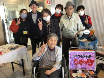 デイサービスなかの町 2021.11.13 お出かけ(^^♪ 11月13日(土曜日) なかの町ご利用のみなさんと新番町スクエアにて開催されていたフリーマーケットに参加しました。 日頃からレクリエーションの一環として皆さんが作られたストラップやブローチを今回初めて出品しましたが、予想以上の反響があり終了時にはほぼなくなっている状態に。 やったねとみんなで万歳(^^)/ キッチンカーでおやつを購入し温かいコーヒーと一緒にいただきました。 久しぶりの外出にウキウキドキドキこの笑顔! お天気にも恵まれ良い外出日和となりました! またみんなでお出かけしましょうね♪