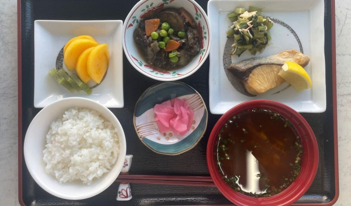 さぬきの森 2024.10.11 【 10月 地産地消 】 【 献立 】 ・ご飯 ・オリーブはまちの塩焼き 付)青菜 ・卵の赤だし汁 ・茄子のそぼろ煮 ・果物(柿) ・漬物 今月の地場食材を紹介します。お米はこしひかり100%・オリーブはまちは香川県産・青菜は郷東町・茄子は綾川町・椎茸は塩江町・卵は香川県産のものです。来月も実施予定なので、お楽しみに!!