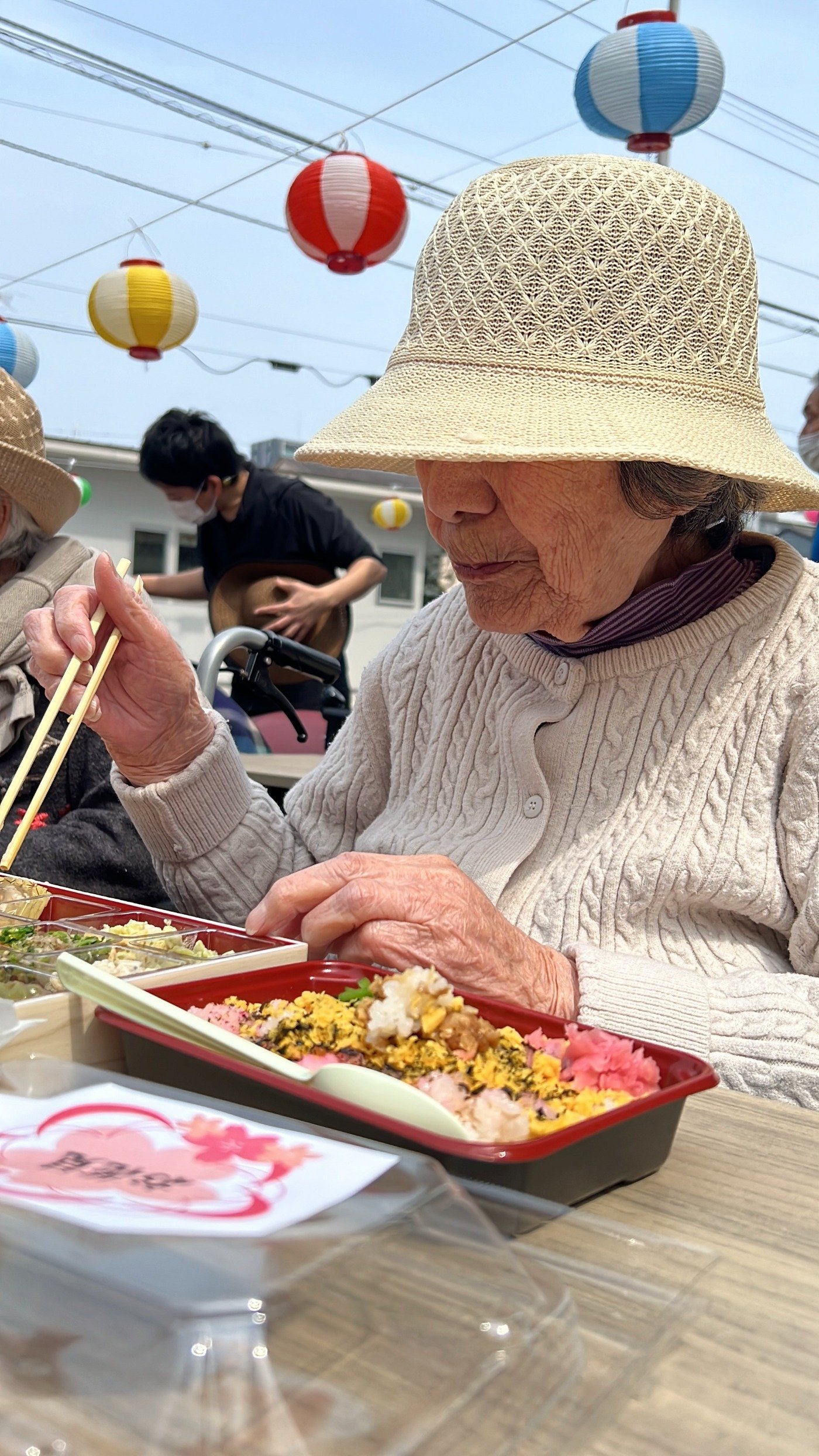 さぬきの森 2026.03.31 さぬきの森 花見会 今年もきれいに中野町公園の桜が見ごろとなりました。 開花に合わせて、さぬきの森花見会を開催。 今年は調理職員が手作りのお弁当を作ってくれました。 天候にも恵まれ心地よい日差しの中きれいな桜を見ながらのお弁当。 デイサービスの余興はリズムに合わせたカップス。 皆さん大満足のお花見会となりました。