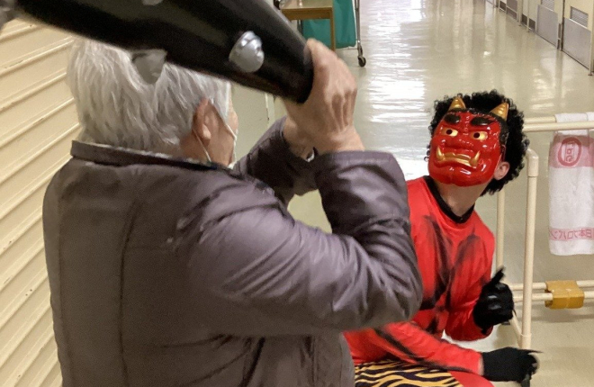 鬼は~外!福は~内! 本日は節分ですね。恵方巻は食べられましたか?今年の恵方は南南東だそうです。 ケアハウスでは毎年恒例の豆まきを行いました。今年は鬼が2人に増え、盛大に盛り上がりました。豆まき後は甘...