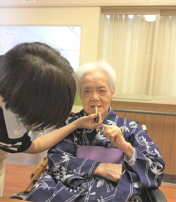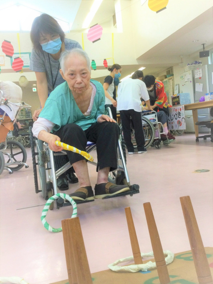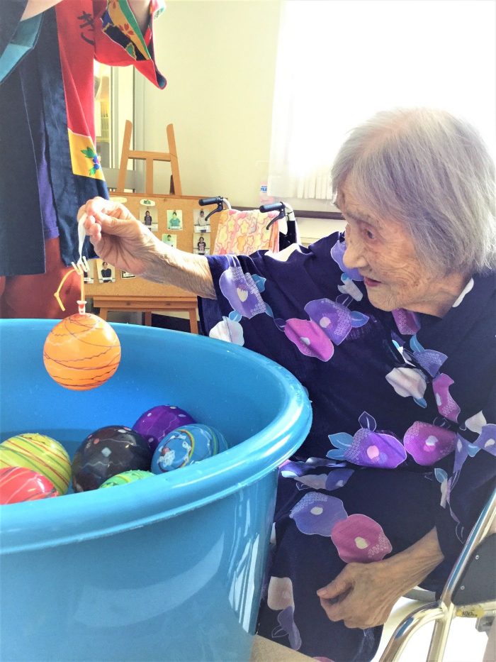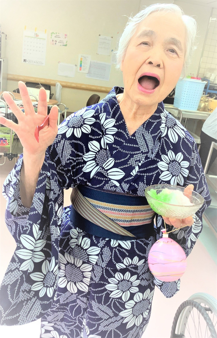 さぬき 2021.08.30 夏祭り 夏の一大イベント 夏祭り! コロナ禍ということで室内で規模を縮小して開催しました。浴衣を着て、お化粧をしてさぁ出発!! キーンと冷たいかき氷、必ず当たるくじ引き、カラフルなヨーヨー釣り、景品がもらえる輪投げ。 昔懐かしい雰囲気に浸りながら、ご利用者同士、職員とのコミュニケーションを深めることができました。