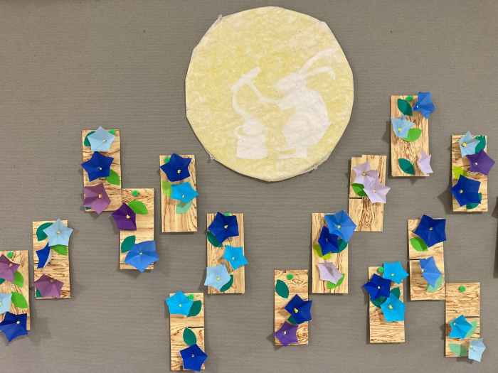 お月様を桔梗の花でお出迎えしました。