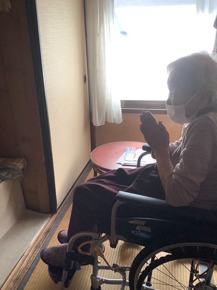 さぬき 2021.09.29 里帰り 2年ぶりに自宅へ帰宅。 到着して玄関前で「私の家…」と一言。 玄関を上がってすぐにお仏壇の前へ行き、ご主人の写真を見て「お父さん、帰ってきました。」と涙ぐまれる。 お茶を飲みながら、飼っていた犬の話、近所の子供たちの話などをして昔の記憶をたどりました。
