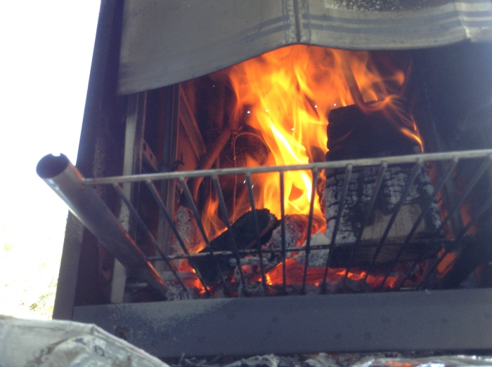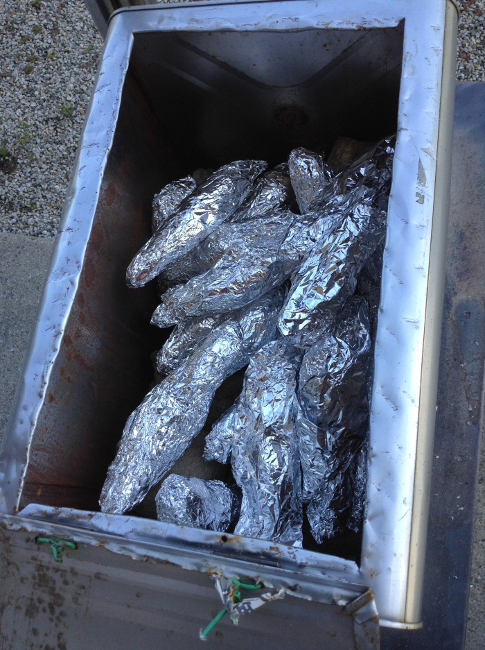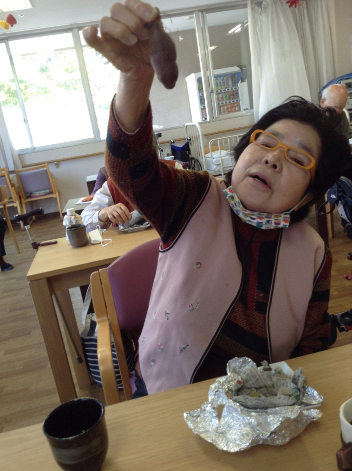 さぬき 2021.11.03 デイサービスの焼き芋 職員自作の薪ストーブで焼き芋を作ってみました。材料のご提供ありがとうございました。 一斗缶の中に石を敷き、その上に濡らした新聞紙にくるんだ芋を入れて焼きました。 中はこんな風になっています。煙突が細いので上の方で2次燃焼が起きるようにパイプを括り付けました。うまくいくかな? よく燃えています。 良く燃えてガラス越しにも炎が見えていました。うまくできるか皆さん見守って下さっています。 しっとりうまく焼けました。 「久しぶりに焼き芋食べた!」「手が込んでるだけおいしいなぁ」と皆様に喜んで頂けました。