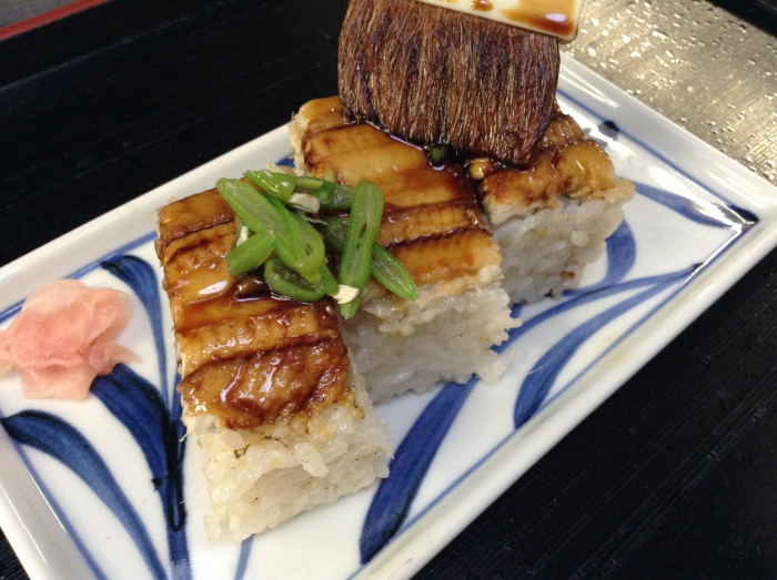 さぬき 2021.11.29 穴子寿司 11月のさぬき寿司は穴子の押し寿司をしました。 魚屋さんから、煮穴子を仕入れ、穴子寿司専用の型で押し、切ったあとたれを刷毛でぬります。 利用者さんから「おいしかったよー」の声をいただけました。