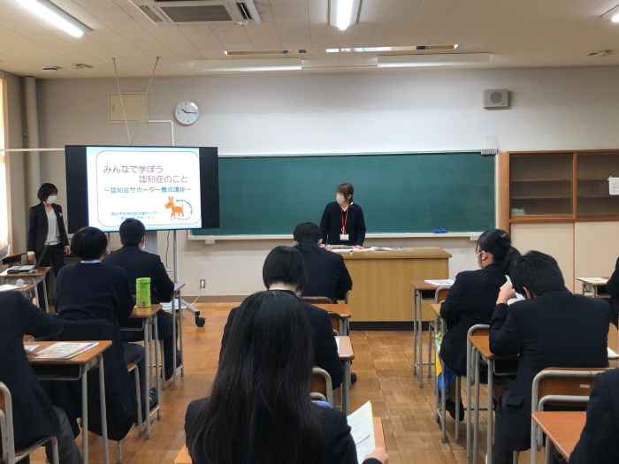 さぬき 2021.12.07 認知症サポーター養成講座 本日英明高校にお邪魔させていただき、認知症サポーター養成講座を開催しましたー!(^^)! 熱心に講義を聞いてくれました(^-^) 寸劇にも参加してくれました。家に帰ろうとして迷子になっているおばあちゃんに優しく声をかけ、素晴らしいお手本を見せてくれました\^o^/ 改めて生徒のみなさんと認知症について学び、理解を深めることができました。また、生徒のみなさんの優しい気持ちに触れ、温かい気持ちになりました(❁´◡`❁)
