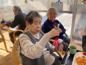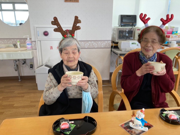 さぬき 2021.12.24 サンタクロース⁉️ ケアハウスにサンタクロースがやって来ました(^-^)v プレゼントは、お花のフェルト加湿器 皆さん、潤って下さいね! ランチの後は、クリスマス茶会 イベントが盛りだくさんの楽しい1日でした。