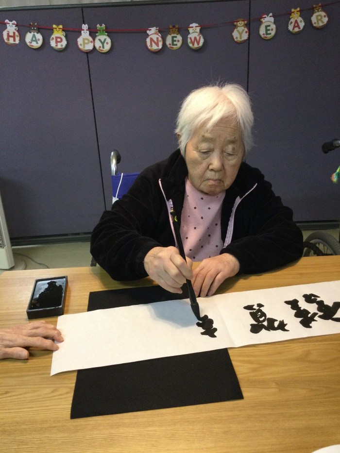 さぬき 2022.01.07 あけましておめでとうございます あけましておめでとうございます 元旦に書初めをしました! 思い思いの言葉を自由に書いてくださいとお願いをすると・・・ 「何か書こうかなあ」「おもちを書こうか!」「できた!ほら!」と見せてくれたのは、まあるいおもち2つ!(^^)! ご利用者、職員みんなの大きな笑い声が室内いっぱいとなりました!! 今年も1年いい年になりますように。 よろしくお願いします。