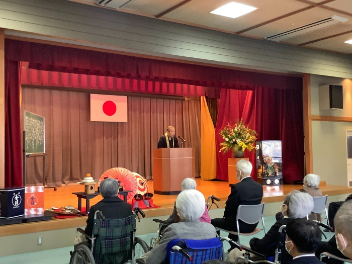 さぬき 2022.01.13 新年式 新年式を執り行いました。 正装してやや緊張の中始まった新年式。 理事長の挨拶では、正月の「松の内」はいつまでかという問いかけに「15日!」と元気よく即答してくれたご利用者がいらっしゃいました!緊張がほぐれた瞬間でした(^^)