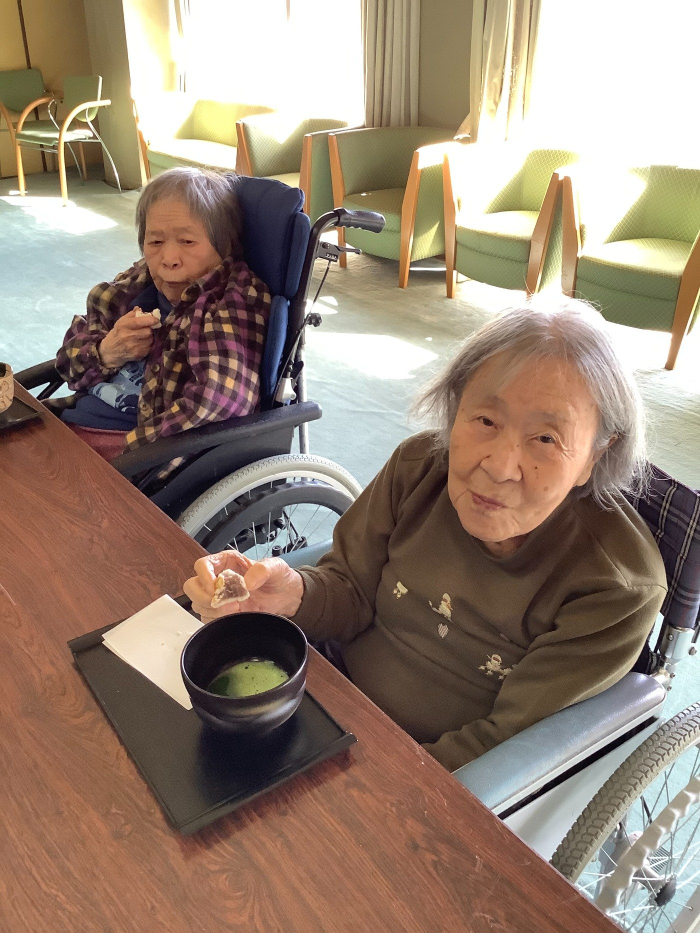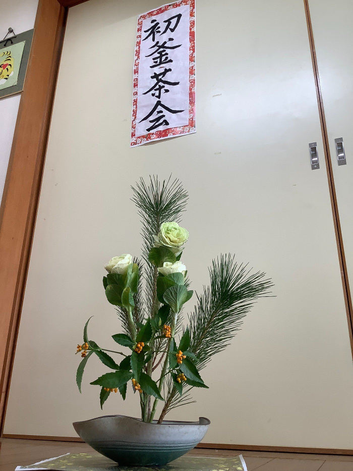 新年最初のお茶会、「初釜茶会」を行いました。上用饅頭を食べながらお抹茶を楽しみました。