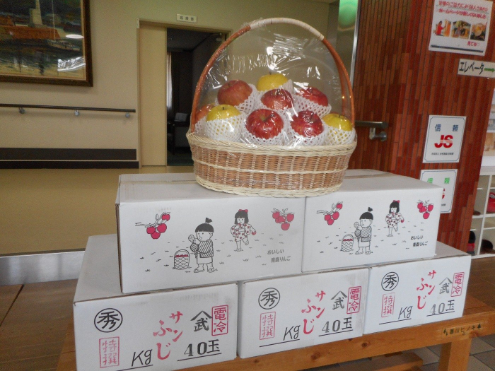 青森といえばりんご!りんごといえばサンふじ!今年もりんごの時期がやってまいりました。そして今年も四国地区青森りんごの会の皆様から青森りんごを寄贈いただきました!このキャンペーンは平成6年からはじまり長年続けて頂いております。入居者様も毎年この時期を楽しみにしており青森りんごの絶妙な甘みと酸味そしてさわやかな香りに春のおとづれを感じています。青森りんごは百薬の長、青森りんごを食べてコロナに負けない身体にしましょう。