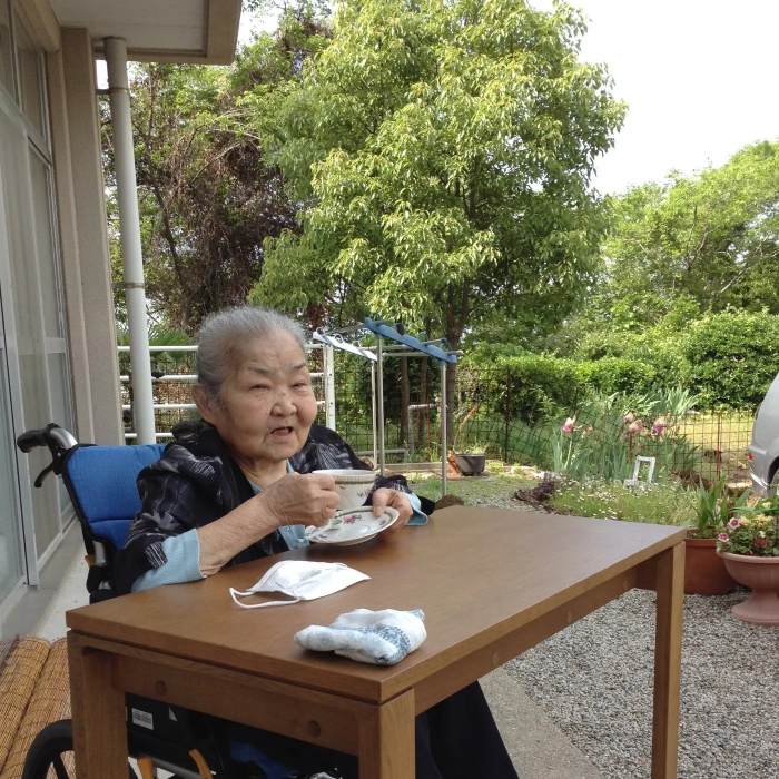 五月晴れの日、施設に咲いているお花を見ながら選んだティーカップで美味しいコーヒーを飲んで春のひと時を楽しみました。