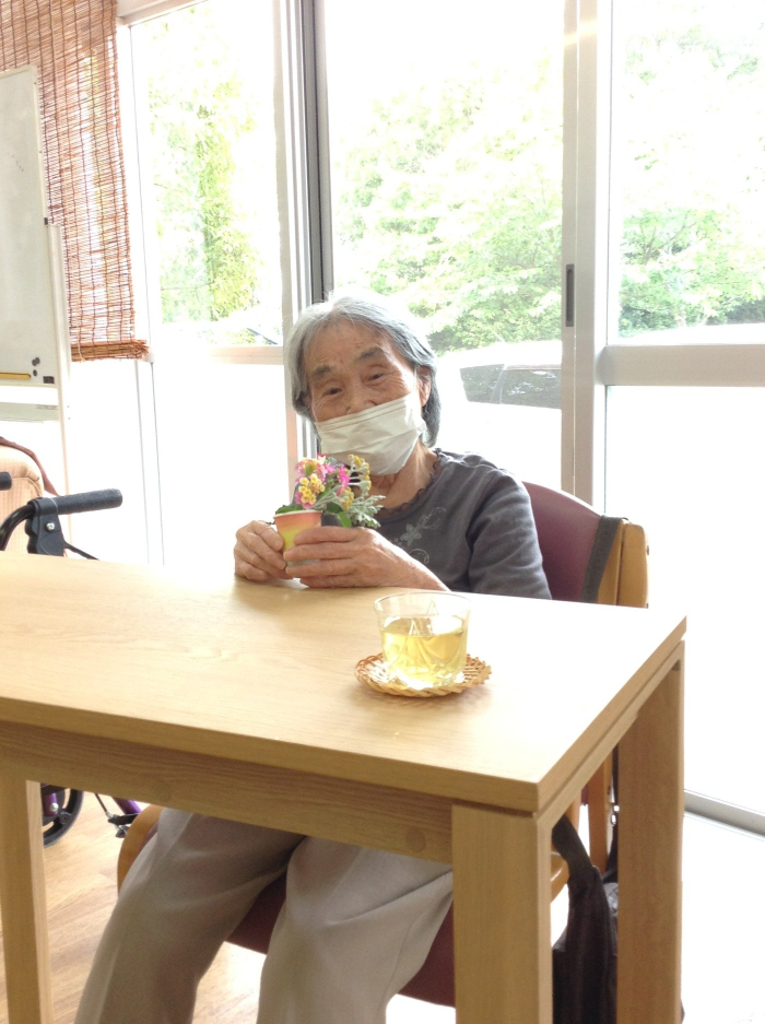施設に咲いてある季節のお花をアレンジし、お部屋が明るく華やかになりました。利用者様からも笑顔がみられ素敵な時間でした。