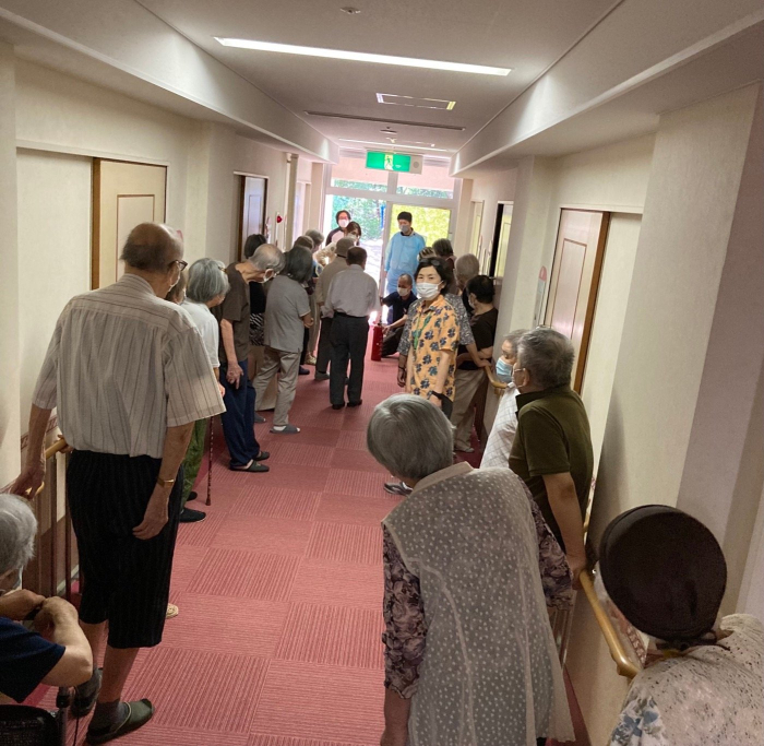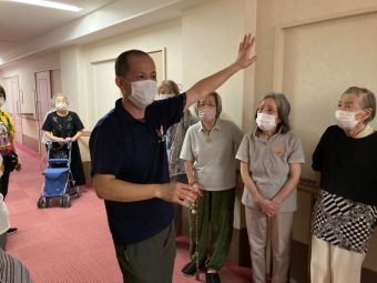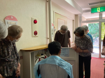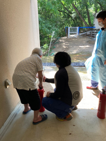 暑さ厳しい中でしたが、入居者の皆様と避難&防火訓練を実施しました。