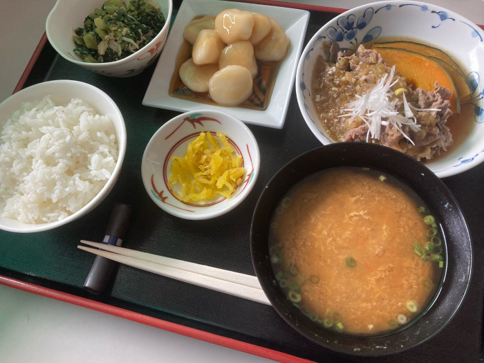 さぬき 2022.09.09 9月 地産地消 9月の地産地消のメニューは 【・ご飯 ・牛肉のねぎソースかけ ・付)かぼちゃ ・かき玉汁 ・青菜の和え物 ・みたらし団子 ・たくあん】でお出ししました。 香川県産の食材は【精白米、牛肉、かぼちゃ、卵、椎茸、細ねぎ、青菜、団子の粉】を使用しています。 みたらし団子は十五夜の前の日ということと、香川県産の団子の粉が手に入ったので作りました。団子が食べられない方にはみたらし風ゼリーをお付けしました。 普段、お団子が献立に出ないので、とても喜んでいただけました。