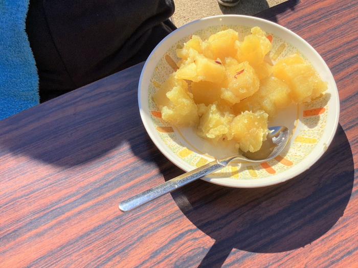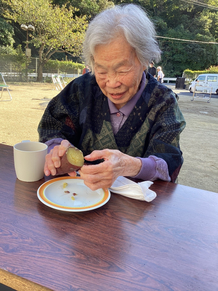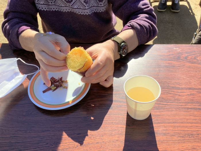 ぽかぽか陽気のなか、焼き芋もうまく焼き上がりました。「甘くて柔らかい」「おいしいっ!」の声をたくさんいただきました!