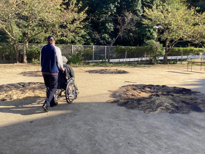 ご利用者に優しく説明しながらもみ殻の周りを散歩してくれています(^^)