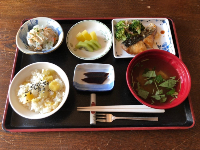 さぬき 2022.11.11 11月の地産地消 毎月第二金曜日は地産地消の日です。本日はさつま芋ご飯のお米(香川県産こしひかり)とさつま芋(坂出市)、照焼のさわら(香川産)、付け合わせのブロッコリー(綾南町)、なますの大根(坂出市)と細ねぎ(上福岡町)、デザートのキウイ(下笠居)と、たくさんの食材を入所者とデイサービスのご利用の皆様にご用意出来ました。 先日の焼き芋といい、入所者の皆様はさつま芋が大好きです。「美味しかった!もっと食べたい!」とうれしいお言葉と笑顔を頂きました。