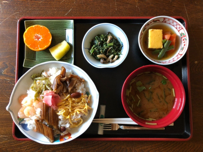 さぬき 2022.12.12 さぬき寿司 さぬきの入所者様・デイサービスご利用者様に大人気のメニューの一つに「お寿司」があります。 12月は寿司飯に金時豆の入ったばら寿司をご用意致しました。金時豆は寿司飯を混ぜた際、崩れない絶妙な柔かさでさぬきの調理員が炊いております。 寒い日々が続いておりますが、彩り良くほんのり甘いさぬき名物のばら寿司に、皆様にこにこ笑顔で召し上がっておられました。