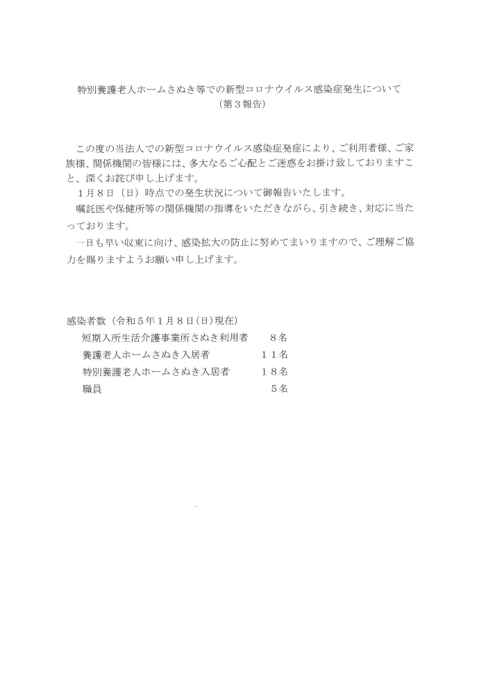 特別養護老人ホームさぬき等での新型コロナウイルス感染症発生について
