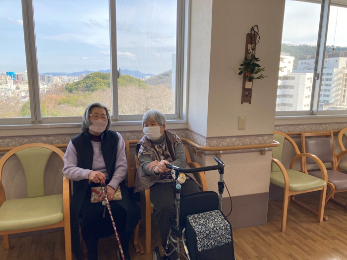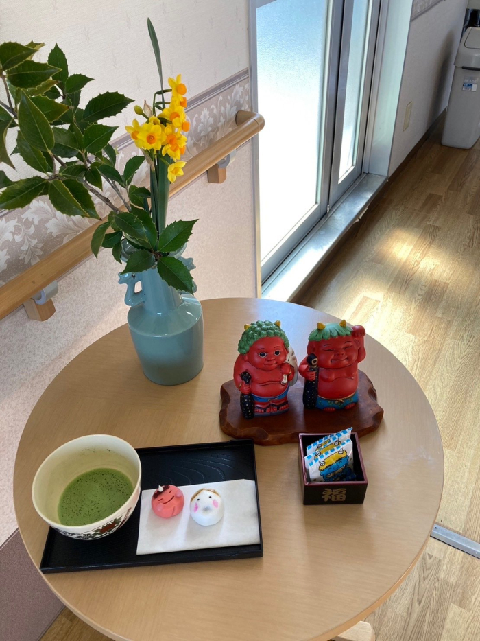 穏やかな日差しのなか、鬼などいないケアハウスでお茶会を開催しました。