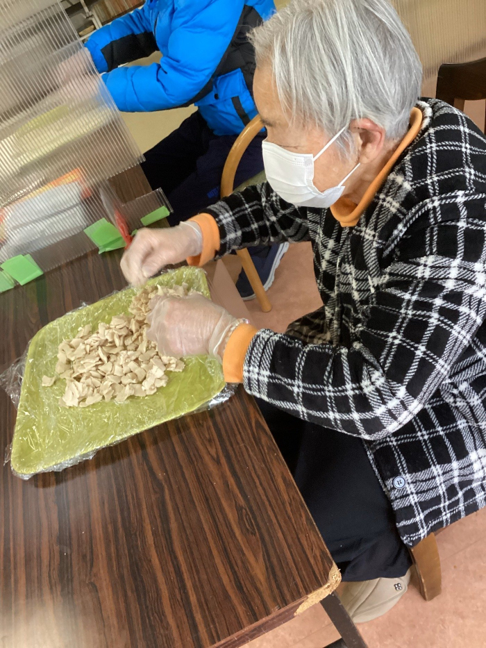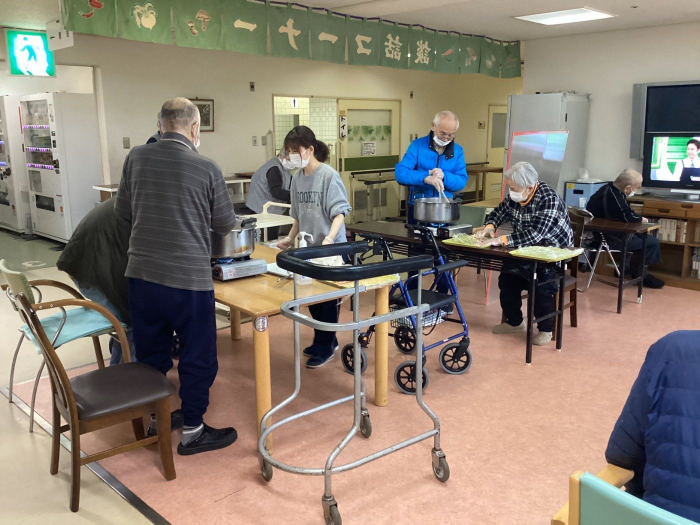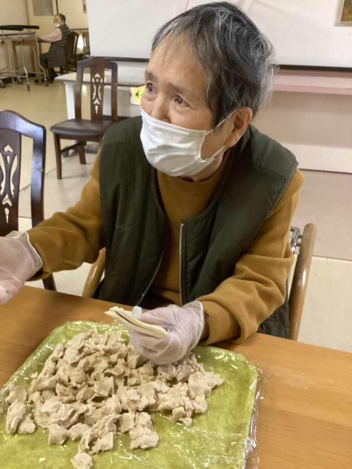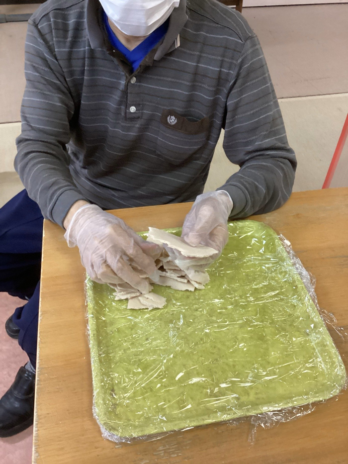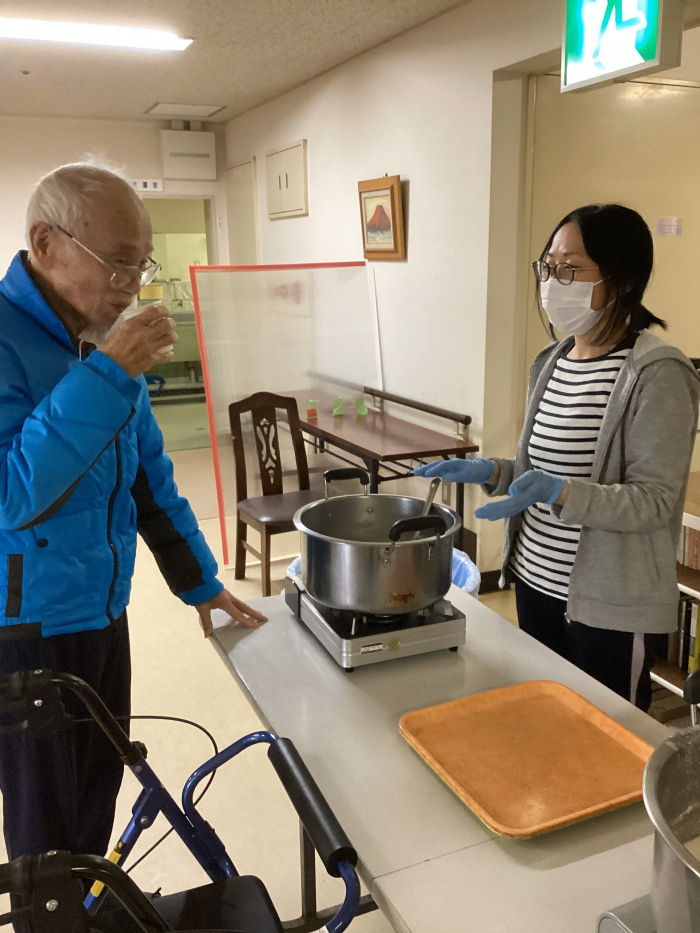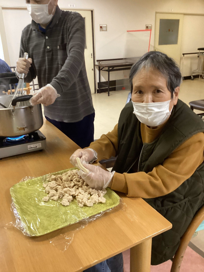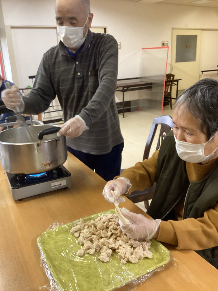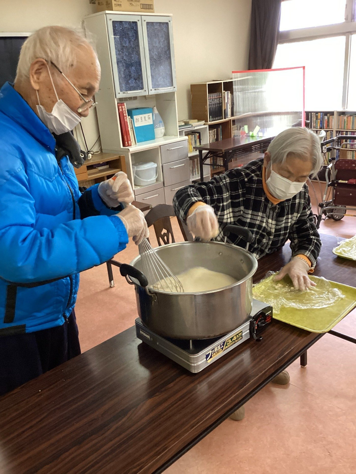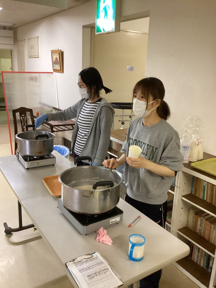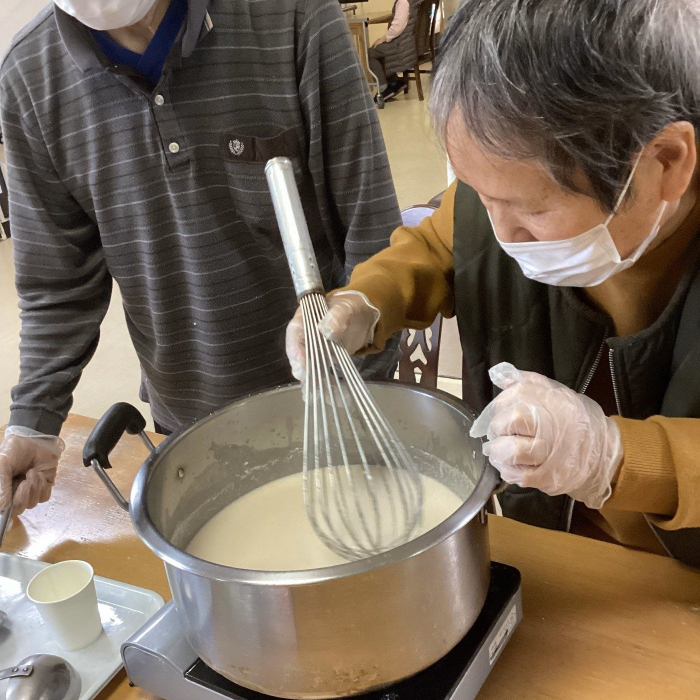 さぬき 2023.05.18 手作り甘酒(養護) 今回の料理クラブでは酒粕から甘酒を作りを行いました。 作り方を調べているとご利用者から「甘酒はこうして作るんやで」とレクチャーをして頂き、最初は遠慮していた方も作業が進むにつれて「貸してんまい!」と実際に手本を見せてくださるなど職員一同勉強させていただきました。 やっぱり先輩たちの手際には敵いませんでした!! 味の好みも人それぞれで元料理人の方が味の監修をしてくれ、生姜が多くて甘いのが好きな方、甘さ控えめが好きな方のために2種類の甘酒を用意。 どちらも美味しいと好評でした。