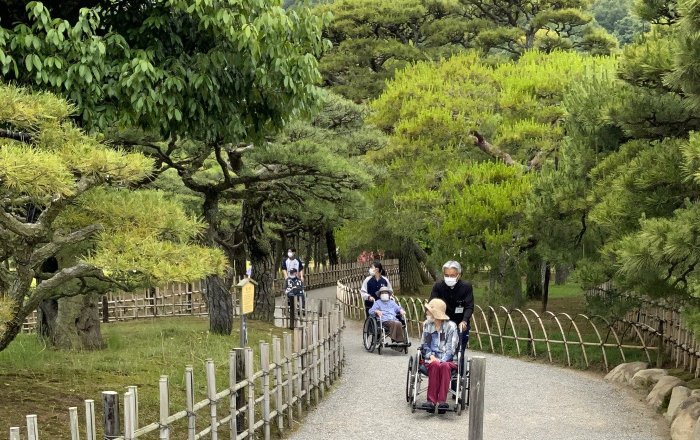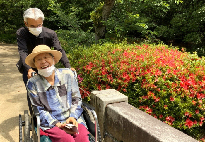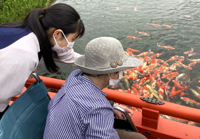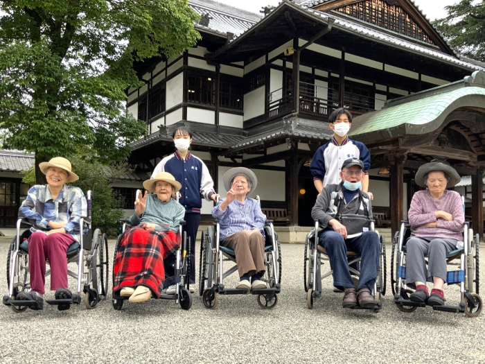 利用者の皆さんも「外はやっぱり気持ちがいいね」「こんなええとこなかなか来れんで」と嬉しそうに笑顔で話しながら実習生の皆さんとも話が弾みました♪