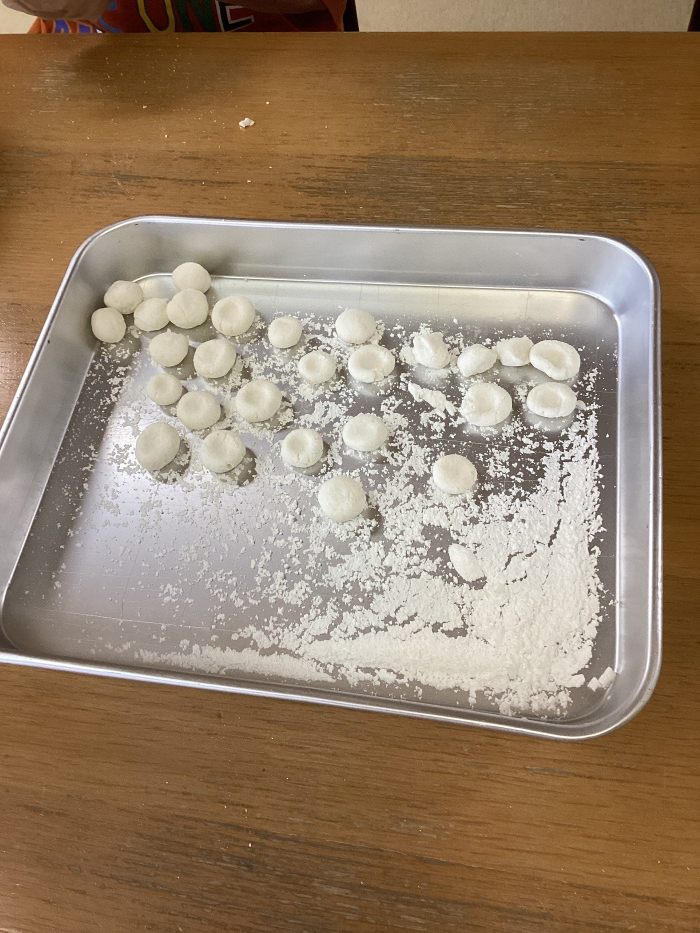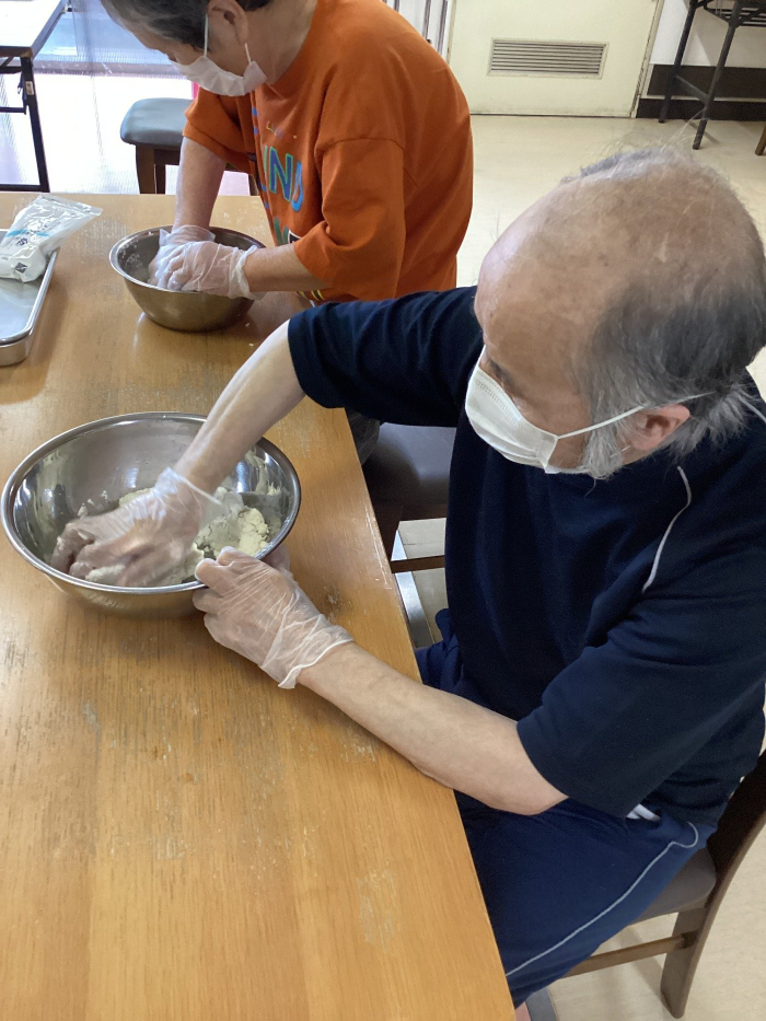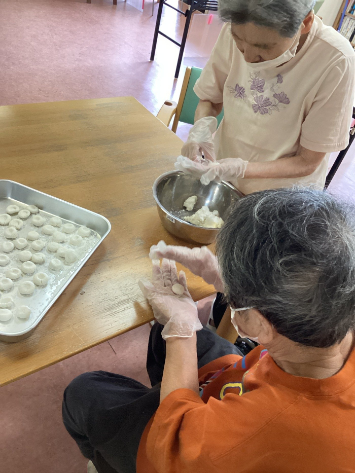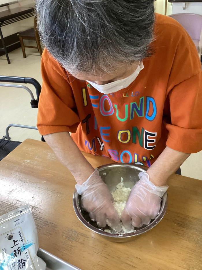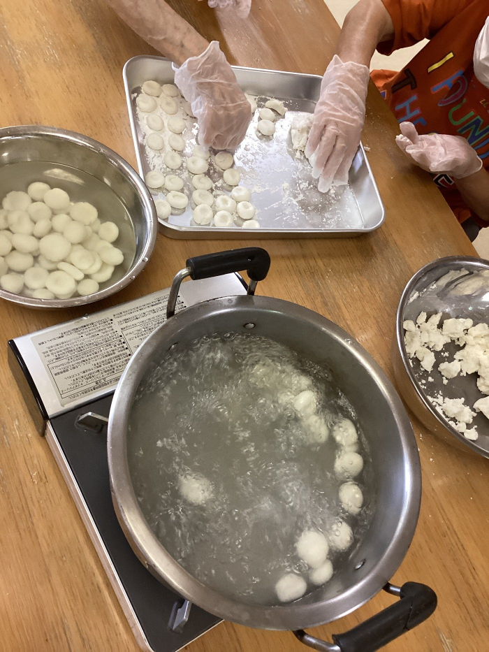 さぬき 2023.09.19 手作りの白玉団子! フルーツポンチ用の白玉団子を作りました。 栄養士から柔らかい団子のレシピを教えてもらい、普段の慣れた手つきで作ってみたものの少し硬めの生地ができました(笑)「これがちょうどいいんや!!!」と口を揃えて話し、いざ茹でてみると案の定とっても固い弾力のある白玉団子の完成!!! しかし味の評判はよく「おかわり!!!」と並び直す方も何人もいました。