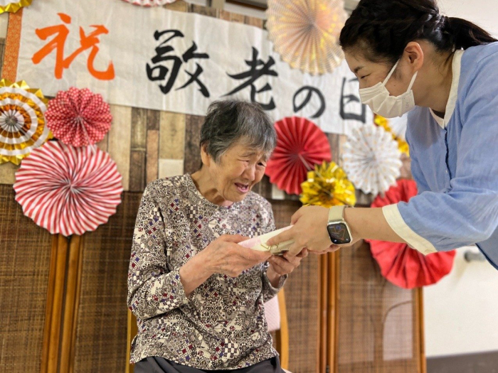 おひとりおひとりにお声をかけながらお祝いの記念品をお渡しすると満面の笑顔で喜ばれ、中には涙を流して喜ばれる方もいらっしゃいました。