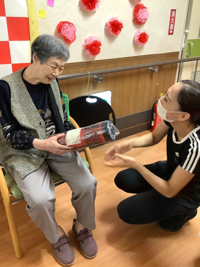 ご利用者代表の挨拶をしてくださった方は88歳の祝い年でもあり、「こんな歳になって貴重な体験をさせてもらったわ、良い記念になった」と嬉しそうに話されていました。