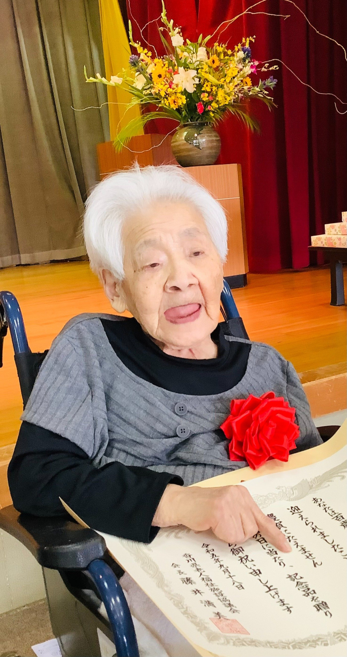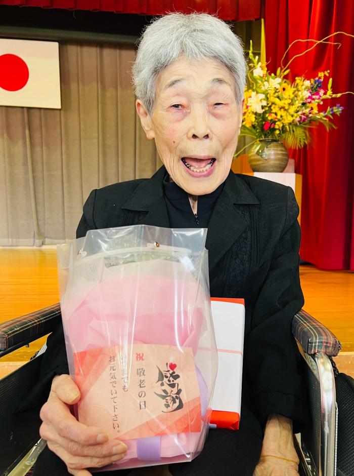 100歳の方には銀杯の贈呈もあり、皆様「ありがとう、ありがとで」と何度もお礼を言われ喜ばれていました。
