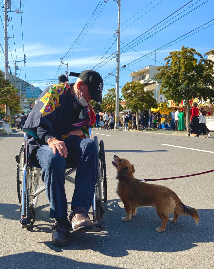 通りがかりに獅子舞が来てくれたり、祭りに遊びに来られた方とお話をしたり。