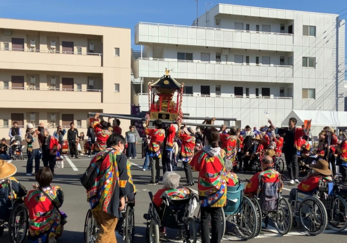 さぬきは養護の利用者の方が作って下さった手作りお神輿を担いでの参加♬