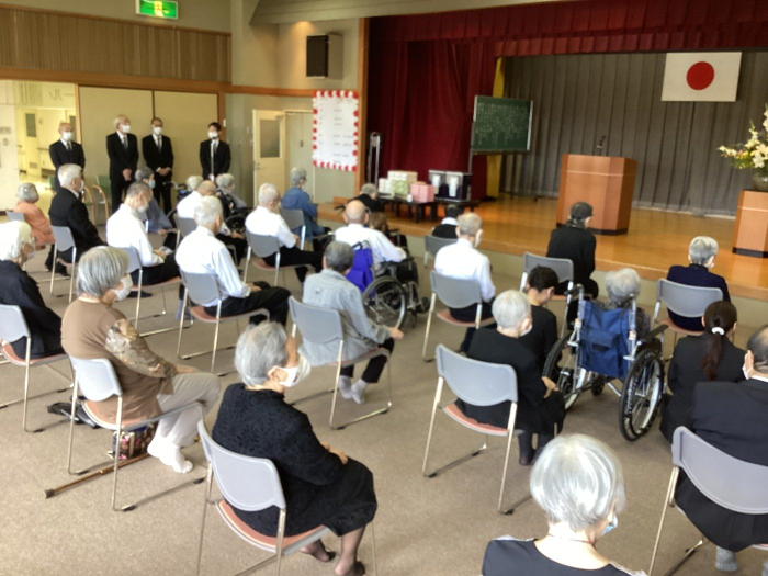 さぬき 2024.09.16 【養護】敬老会 施設内にて令和6年度の敬老式を執り行いました。 皆様ご長寿おめでとうございます!(*^^*) 養護での最高齢はなんと97歳\(◎o◎)/! 90歳以上の方が10名もいらっしゃいます! 皆様これからもお元気でお過ごしください(^^♪