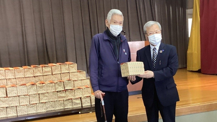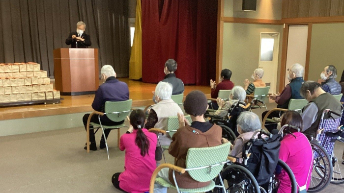 さぬき 2024.11.14 【養護】高松信用金庫 慰問 高松信用金庫様による慰問がありました(^^♪ 今年で60回目、コロナ禍も継続している慰問品贈呈式です。 高松信用金庫理事長大橋氏より慰問品を受け取りました。