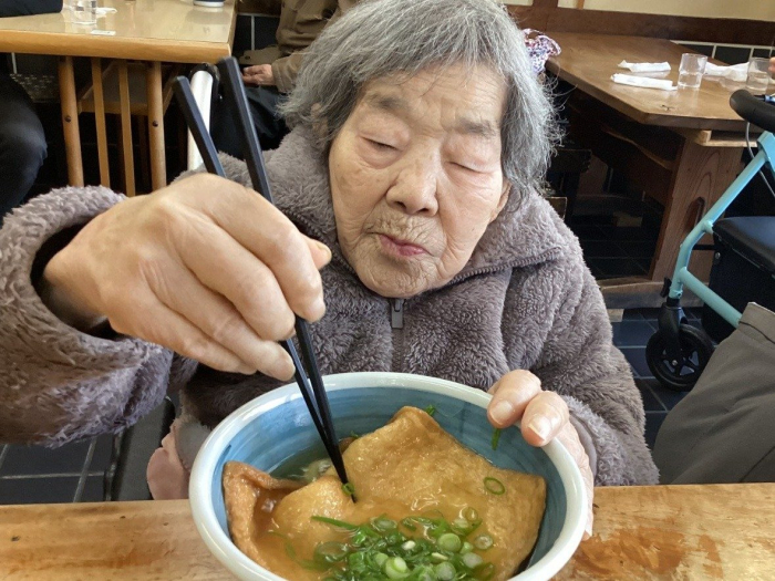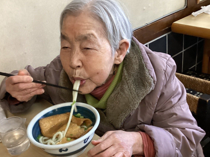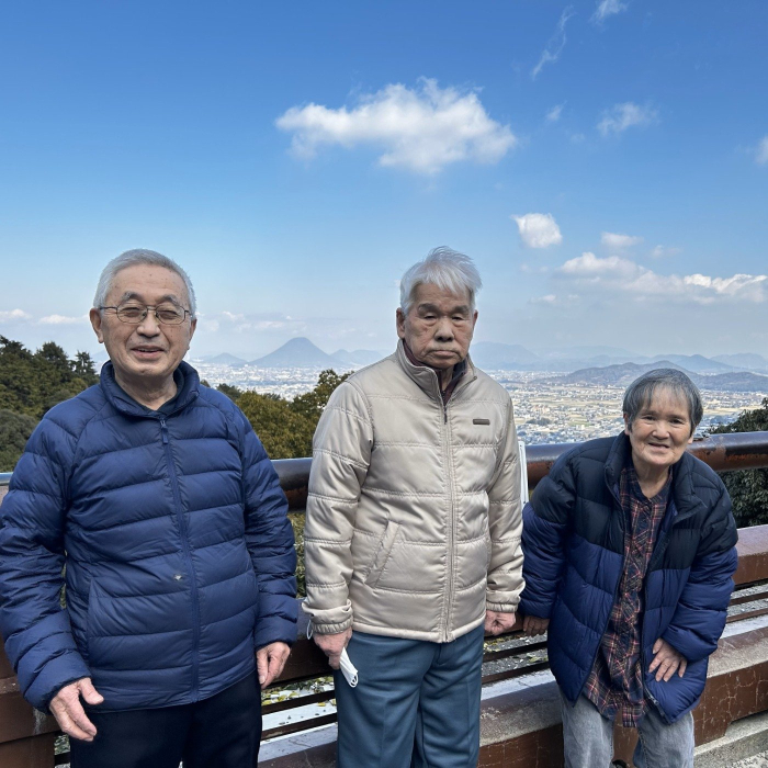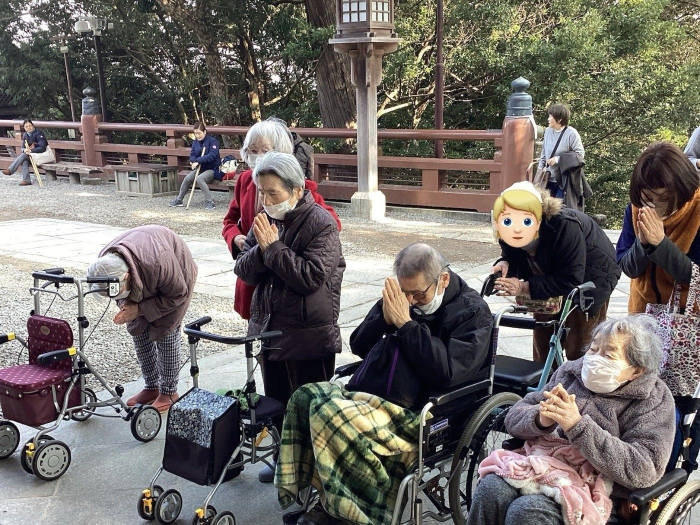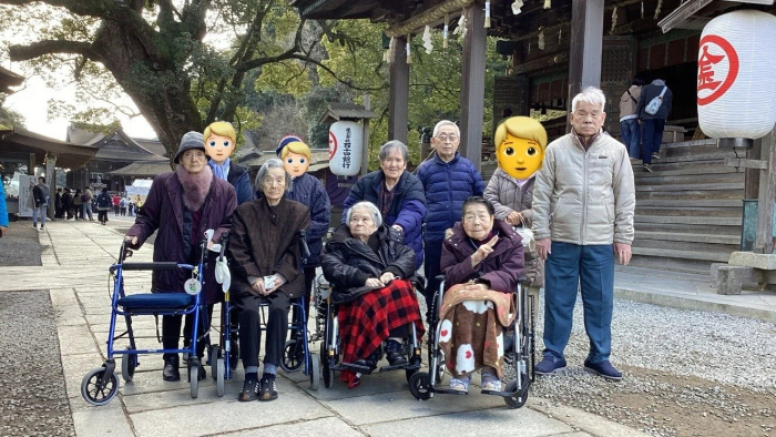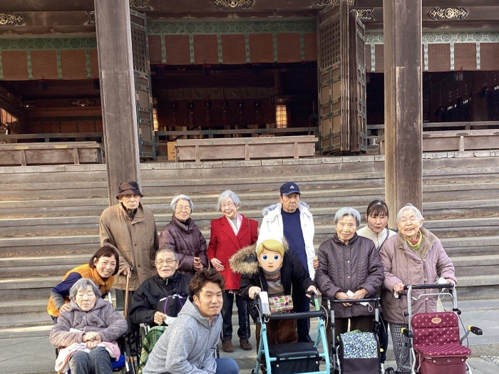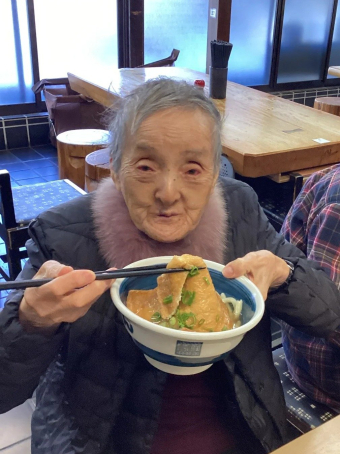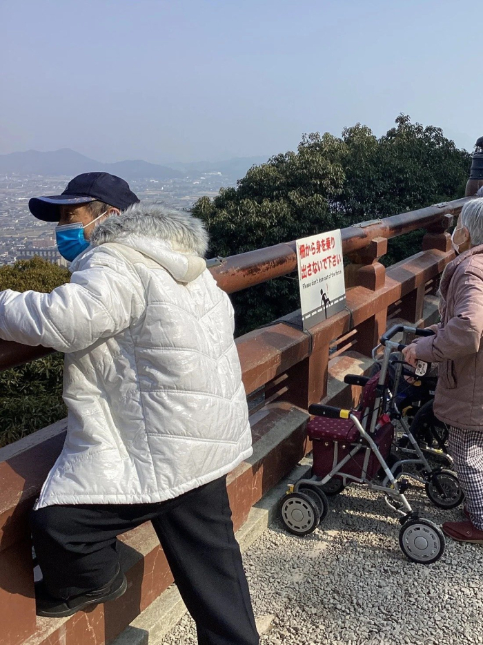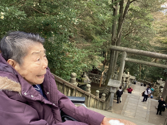 さぬき 2025.01.24 【養護】初詣(金刀比羅宮) 金刀比羅宮に初詣に行ってきました(^_-)-☆ 皆手を合わせ、それぞれにお祈りをされていました。 御本宮前にて記念撮影。 御本宮直の御前四段坂をのぞき込み、「うわー!元気な頃はここを歩いて登り寄ったんやなぁ」と目をぱちくりされていました。 参拝後は、昼食に参道にあるうどん屋でおーきなお揚げのきつねうどんをいただきました。
