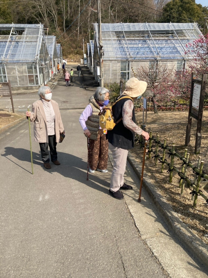 さぬき 2025.03.06 【ケアハウス】梅を観賞しに行きました まだまだ寒い日が続きますが、いかがお過ごしでしょうか? ケアハウスでは2月の終わりに香川県園芸総合センターとJA産直空の街に行ってきました。園芸総合センターでは梅を観賞し、梅の他にもパンジー、ビオラ、ストック、シクラメン等、春を感じられるお花が沢山咲いていました。また、帰りにはJA産直空の街に寄り、買い物もされました。スーパーではあまり見慣れない商品を手に取られ、じっくり考えながら購入されていました。また季節のお花を観に行きたいですね!