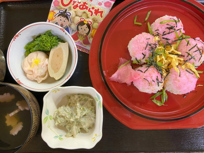 昼食にはお寿司が提供され、ひなまつり気分を味わえました(^^♪