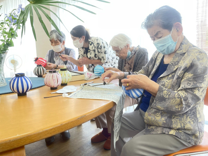 美味しい和菓子を召し上がった後には、夏の風物詩である提灯作りに挑戦!