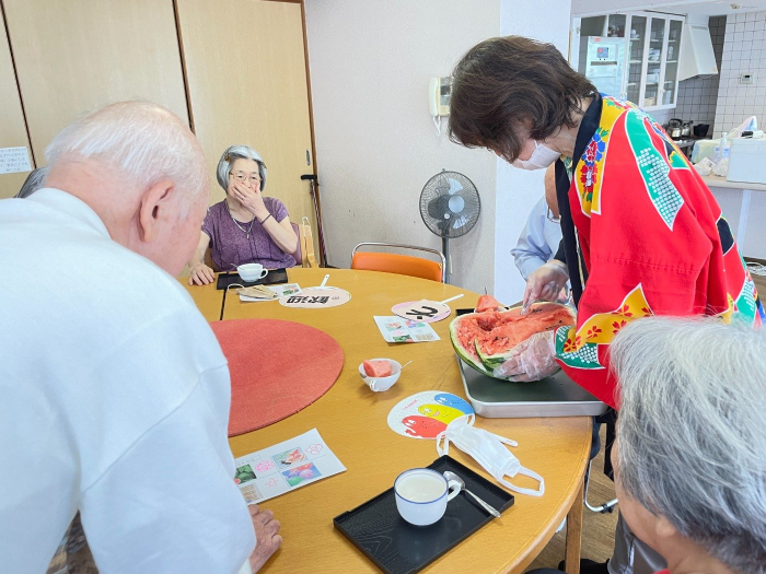 ゲームを楽しんでもらった後には甘酒やアイスクリームを使ったスイカのデザートを提供させていただき「美味しい」と喜んでいただけました。