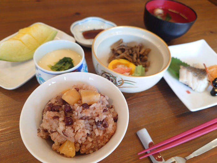 さぬき 2025.09.15 敬老の日 本日、敬老の日を迎えられましたことを、心よりお祝い申し上げます。 昼食は、栗赤飯や鯛の塩焼きなどの祝い御膳を入所者様とデイサービスご利用者様にご用意致しました。 午後のおやつも、入所者様とショートステイご利用者には、嚥下状態に合せて、 祝いまんじゅうか羊羹をご用意致しました。
