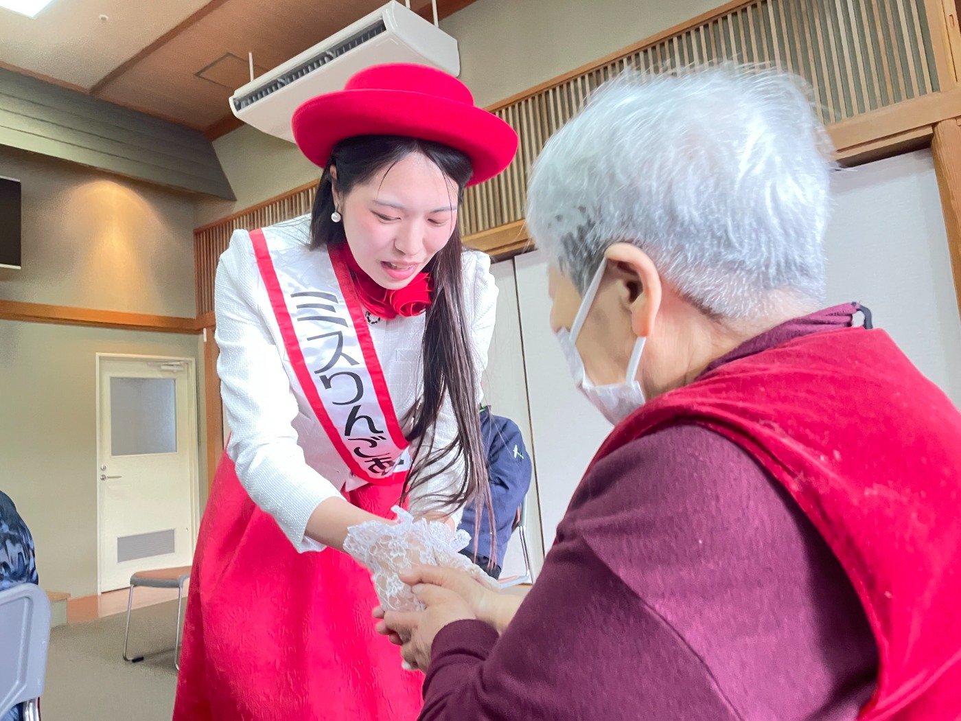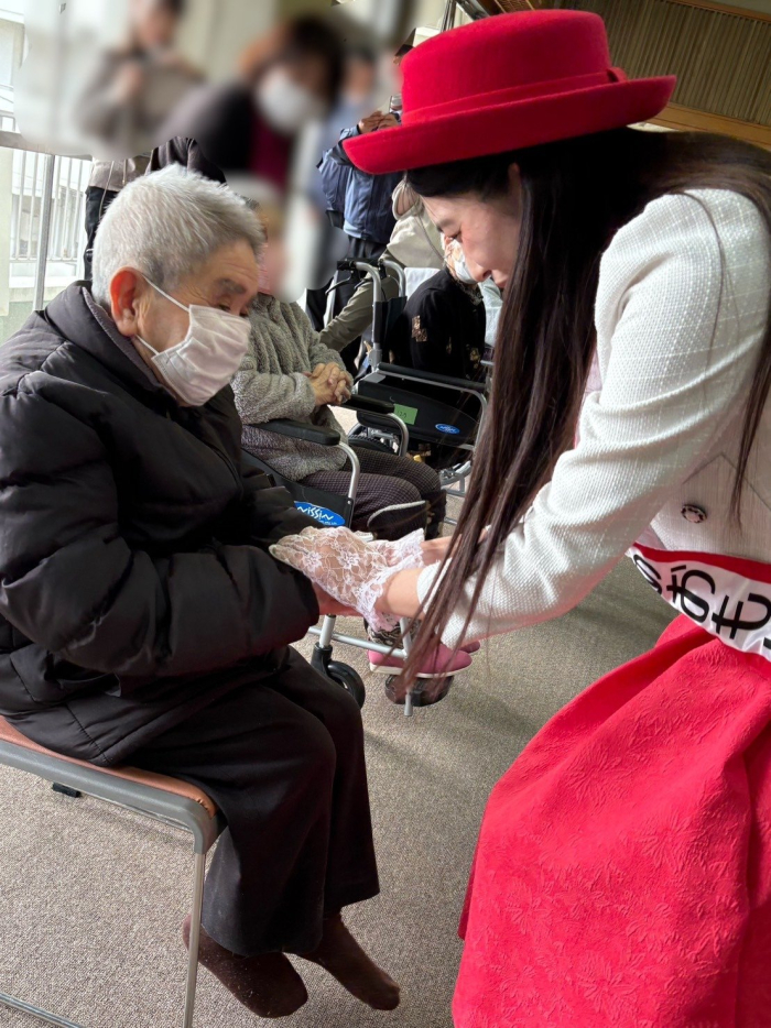 さぬき 2026.01.27 【ケアハウス】りんご娘様 昨年に引き続き、青森県から、りんご娘様が林檎を持って来て下さりました。 サンふじと王林の酸味や甘みについて説明して下さり、入居者様は「食べ比べしたいわ!」と喜ばれていました。また、食事で提供される事をお伝えすると「楽しみ!」と笑顔が見られました。 りんご娘様、ありがとうございました。また来年もよろしくお願いします。