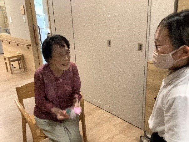 新番丁スクエア 2021.09.21 いつまでもお元気で 敬老のお祝いをしました。 グループホーム新番丁では、まあるの子供たちからお手紙と折り紙や和三盆。職員からは手づくりカードと感謝状をお一人お一人にお渡ししました。 まあるの子どもたちとは初対面!短い時間でしたがようやくお顔を見ることができました。 「私の名前が書いてあるわ!難しい漢字やのにあんたが書いてくれたんな~ありがとで~」 双方はにかみながらも笑顔あふれる瞬間でした。