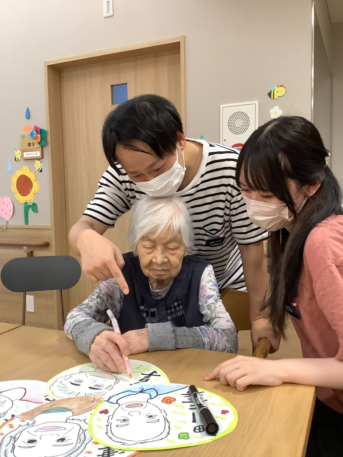 新番丁スクエア 2022.08.25 お手製うちわ 新番丁グループホームでは夏の恒例、オリジナルうちわを作成しています。 ご自身の似顔絵にうっとり✨しながら夏を涼みます。 #社会福祉法人さぬき#新番丁スクエア#グループホーム新番丁#うちわ#オリジナルうちわ#似顔絵