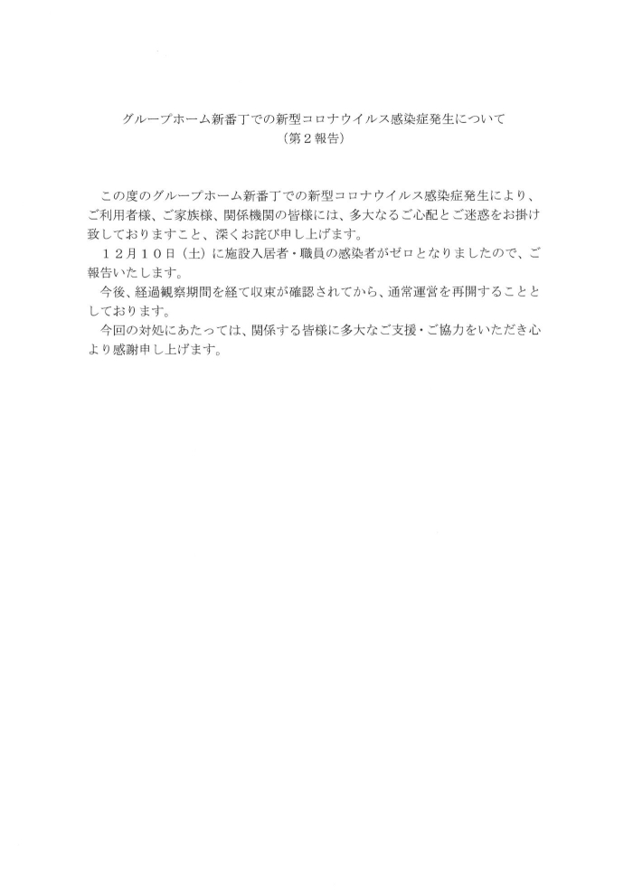 グループホーム新番丁での新型コロナウイルス感染症発生について