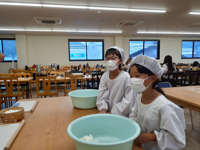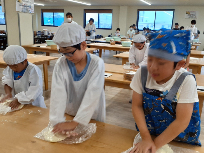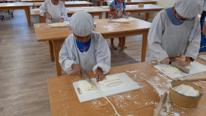 作り方の説明を聞きながら、混ぜて伸ばして、大変な工程ですが、みんな真剣に取り組んでいました。