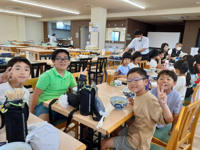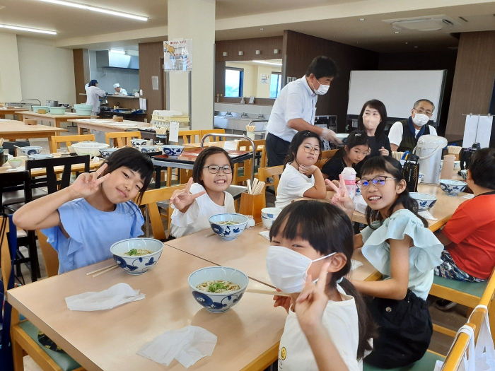 「いただきまーす。」みんなで作ったうどんは格別美味しかったです。