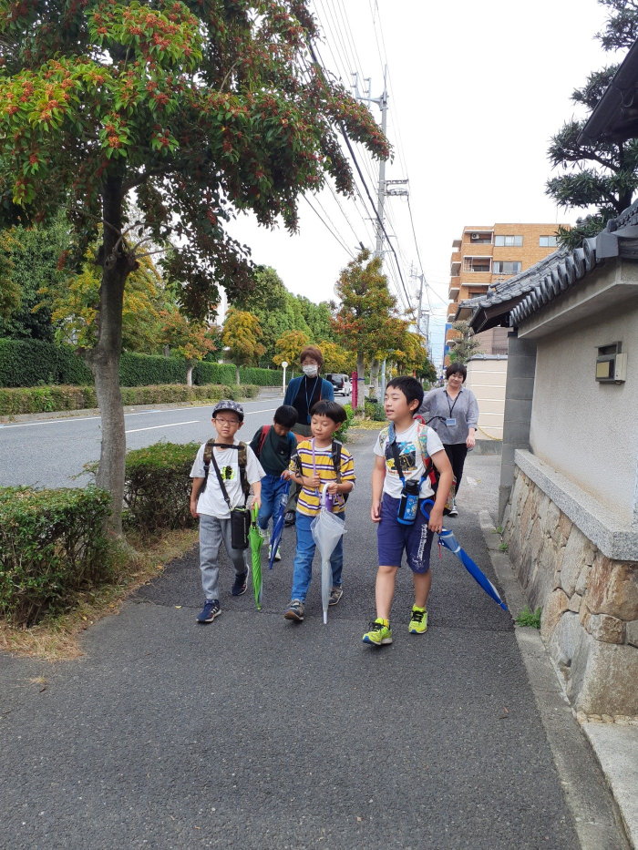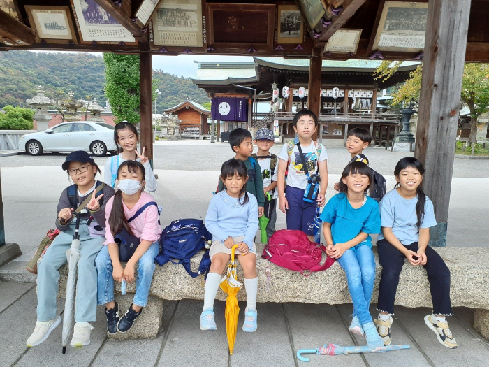 11月6日は、新番丁小学校振替休業日でした。石清尾八幡宮まで散歩に出かけました。この日は季節外れの暑さで半袖で出かけたお子さんもいました。