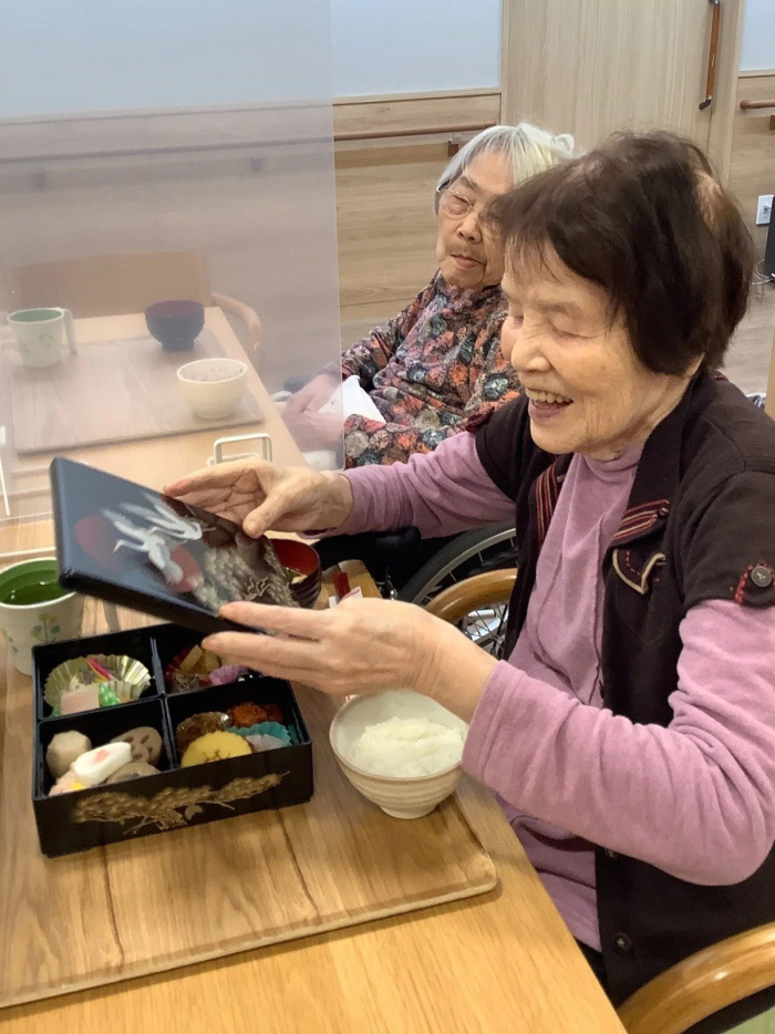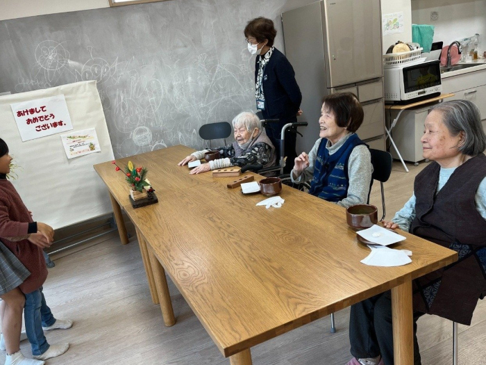 元日は、無病長寿を願って、入所者様1人1人に声をかけさせていただき、お屠蘇を振舞いました。
